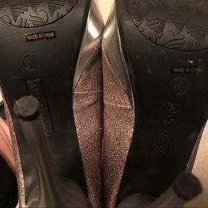 New - Women’s 5.5” Platform Glitter Stiletto. It’s been in a plastic shoe box and only issues is: a little tear on one of the front heel and some marks.