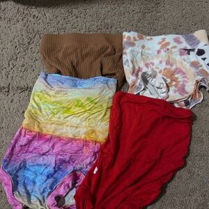 4 pairs of bamboo bummies. 0-3 and one 3-6 but the 3-6 fits a bit smaller. Brands Muse Threads, Angel Dear and Spearmint Love. All in GUC. Bamboo is the BeST!