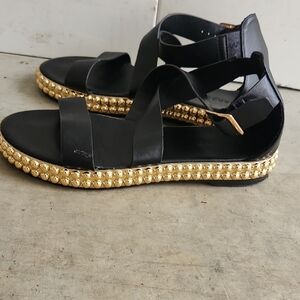 Bamboo Black and Gold Women's Sandals Size EU 38 US 8 excellent condition blemish as shown