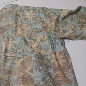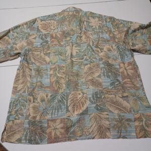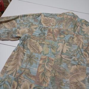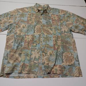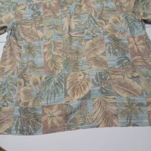 Bamboo Cay Button Up Men Lg Shirt Tan Palm Tree Short Sleeve Cotton Modal Blend