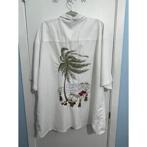 Bamboo Cay Christmas Shirt XXL White Embroidered Santa's Hula Lounge Hula Girl Palm Trees Hawaiian Beachy Tropical In great condition.