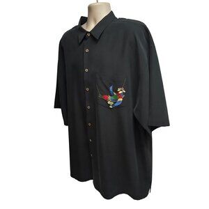 Bamboo Cay Vintage Black Embroidered Button Front Camp Shirt 4XL Pocket Parrot