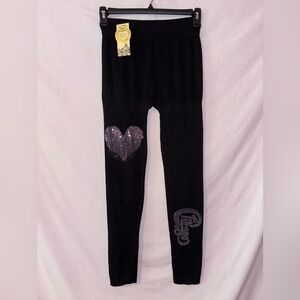 Elevate your style with these elegant black leggings featuring a sparkling glitter heart and Chicago accents. Perfect for adding a touch of glamour to any outfit.