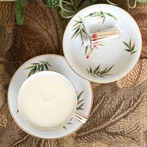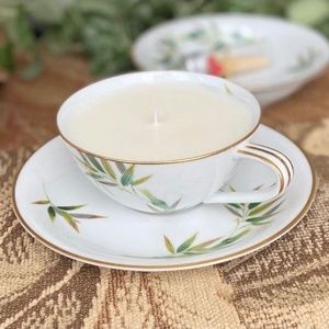 Bamboo Coconut Soy Candle Set Vintage Noritake Orient Tea Cup China