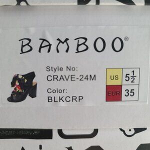 Bamboo Crave Black With Satin RIBBON Tie Block Heels Pretty Sandals Size 5.5