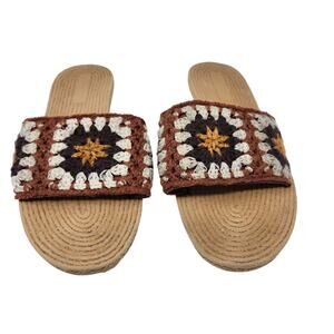 Bamboo Crochet Retro Earthy Brown Tan Boho Slide Sandals Summer Shoe Size 10