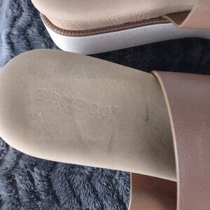 Bamboo Cycle-04 Tan Strappy Sandals – Size 5.5 – 2" Heel – All Manmade