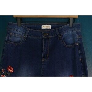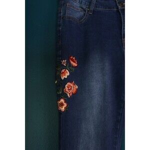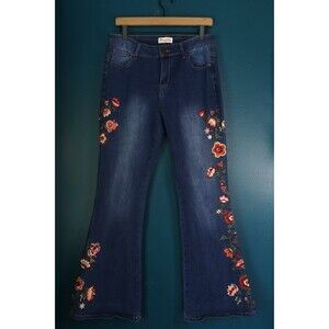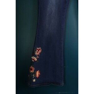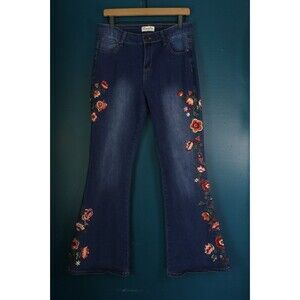 Bamboo Denim Bell Bottom Jeans Dark Wash Stretch Embroidered Floral Boho Cowgirl