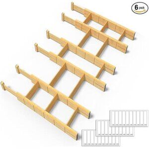Bamboo Drawer Dividers Adjustable Expandable Kitchen Organizer with Inserts Labe