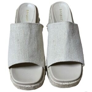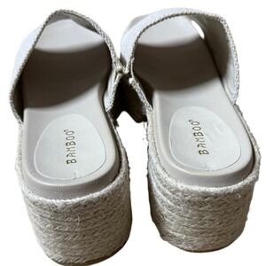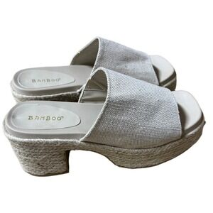 Elevate your summer style with these Bamboo espadrille platform sandals in size 8. Designed with a chunky heel and woven jute-wrapped sole, these neutral slide sandals offer both comfort and effortless chic.