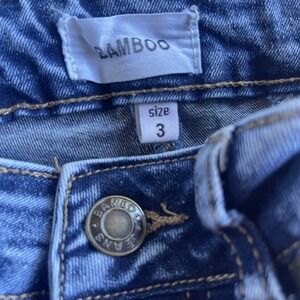Bamboo Jeans Junior Size 3 Blue Patchwork Flare Raw Hem Front Seam Y2K Boho