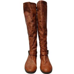 Bamboo Montage 10 Womens Boots Brown Knee High Faux Leather Buckle Stud Lined
