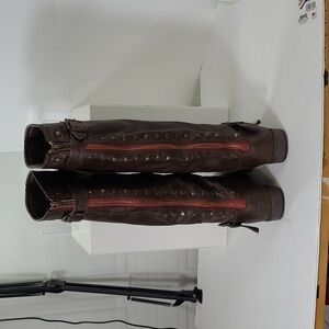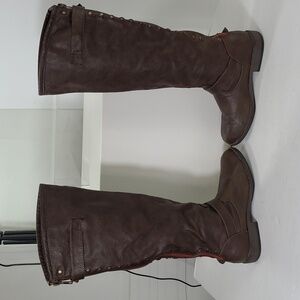 Keywords: Bamboo Montage 83 Brown Studded Knee High Riding Equestrian Boots- Vegan Leather