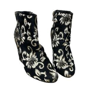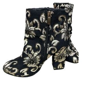 Bamboo Namaste Tapestry Black & Gold Floral Ankle Block Heel Booties Size 8