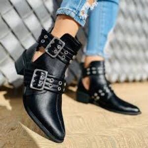 Bamboo Oliver Pointed Toe Bootie Double Buckle Open Side | Black Size: 7.5