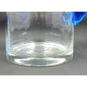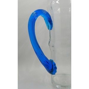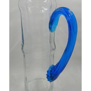 Bamboo Optic Paneled Clear Glass Cocktail Pitcher Blue Ribbed Handle