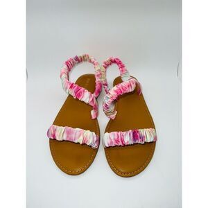 Bamboo Pink Tie-Dye Textured Ocean Line Sandal Size 6 New With Box