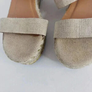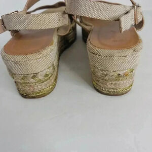 Bamboo Platform Espadrille Sandals Cream and Gold Canvas Woven Size 10