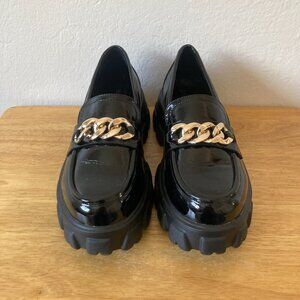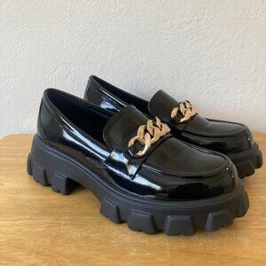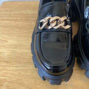 tags: Y2K Chunky platform loafers gold chain patent leather clueless 90s twee whimsigoth