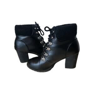 Bamboo Rattle Womens Faux Leather Lace Up Heels Ankle Boots Size 9 Black