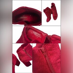 Bamboo Red Velvet Ankle Booties Women’s 7.5 Statement Fall & Holiday Party Heel