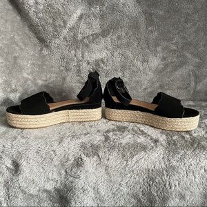 Bamboo Scallop Edged Band Platform Espadrilles 7.5 With Ankle Strap