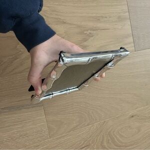 Bamboo Silver 5x7 picture frame photo stand card holder decor home VTG gift new
