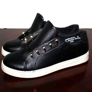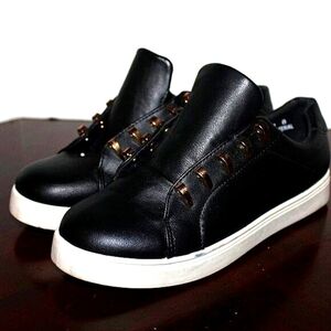 Bamboo Slip-On Sneakers - Women's Size 8 - Black - Gold Stud Detail - W/Laces