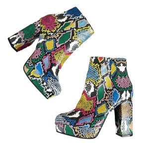 Bamboo Sorbet Ankle Boots Multi Color Rainbow Faux Leather Sz 5.5 Colorful