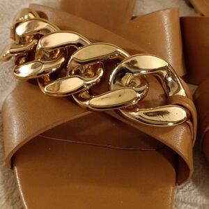 Bamboo Tan Gold Large Link Sandals Sz 8