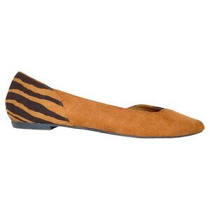 Add a wild edge to your wardrobe with these Bamboo tiger-striped d'Orsay flats in size 8.5. These bold and stylish pointed-toe flats feature a unique mixed-material upper—faux suede at the toe and heel with animal print fabric sides that give indie-meets-Y2K energy.