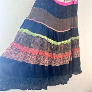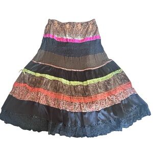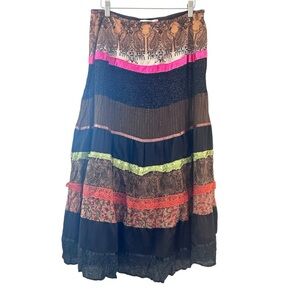 Bamboo Traders Bohemian Multicolor Tiered Mixed Media Women's Midi Maxi Skirt L