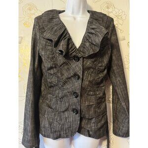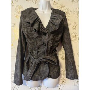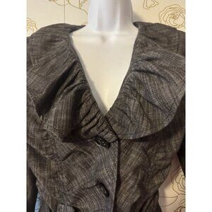 Bamboo Traders Top Ruffle Womens Size Medium Gray Long Sleeve Belted 078