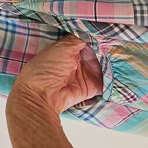 Bamboo Traders' true patchwork skirt. Size 12P. 2 pockets. One button m…