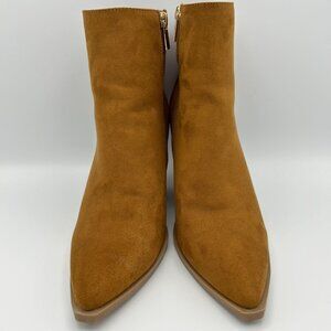 Bamboo Upstream Tan Suede Ankle Boots With Block Heel Western Size 10 Zippers