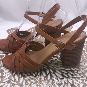 Bamboo Vegan Leather Weaved Vamp Chunky Heel Sandals Size 6.5