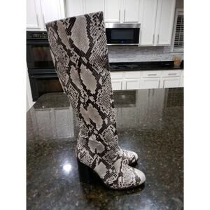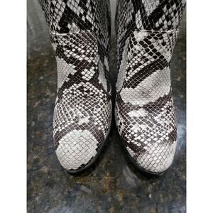 Bamboo Wedge Boots Women's 8 Multi Faux Leather Snake Print Round Toe Side Zip