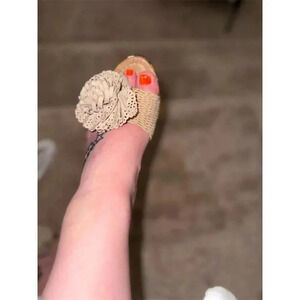 Bamboo Women's Beige Wedge Sandals Size 7 Floral Detail Summer Casual