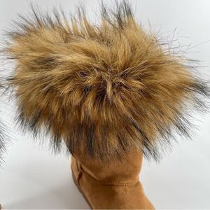 Tags: women boots, journee collection, winter boots, fall boots, faux fur boots, faux Leather boots, tan boots, casual, outdoors, faux fur lined boots, pull on boots, shearling style, faux suede, vegan suede, slippers, Y2K, 90s