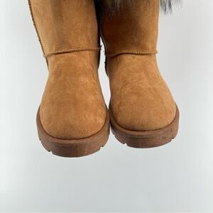 Bamboo Women’s Brown Round Toe Vegan Suede Faux Fur Tall Platform Boots Size 8