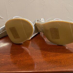 Bamboo Women's Silver Metallic Ankle Strap Block Heel Sandals - Size 6.5