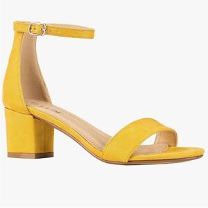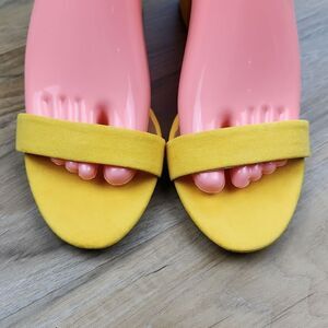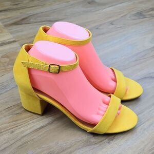 🩵Bamboo Yellow Suede Chunky Block Heels Size 8