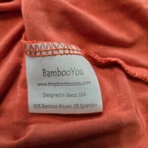Size X-Small; Material - 95% Bamboo Rayon, 5% Spandex; Machine or hand wash; Made in China; Scoop Neck, Short Sleeves, High Low Hem; Coral Color;