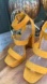 Bamboo platform Admire mustard yellow faux suede strap sandals size 8.5