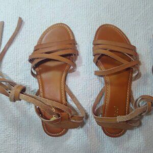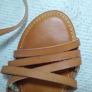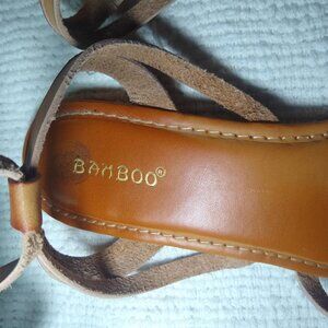 Bamboo size 7 leather tie up sandals saddle/caramel color