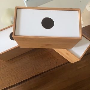 Beautiful, bamboo stackable organization boxes with complimentary white lids