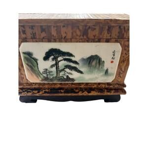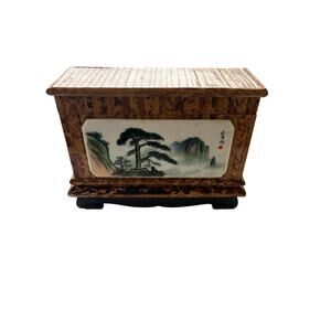 Bamboo with Faux Marble Plaque Tea Box from Peoples Republic of China. Item is 8” x 6”