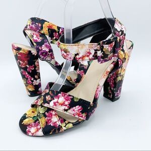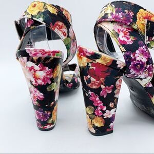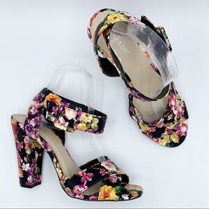 Bamboo Bright Pink Floral Chunky Heel Sandal Sz 10