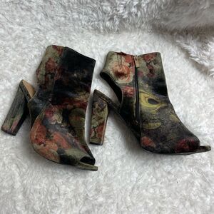 Bamboo Fall floral multi color Velvet ankle sandals peep toe side zipper size 11