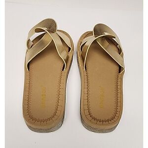 Bamboo Gold Metallic Flat Sandals Size 5.5.
